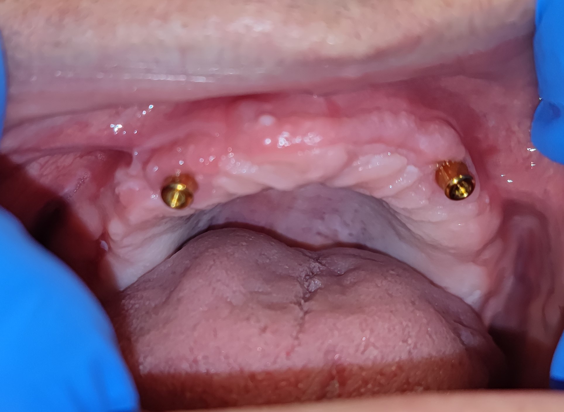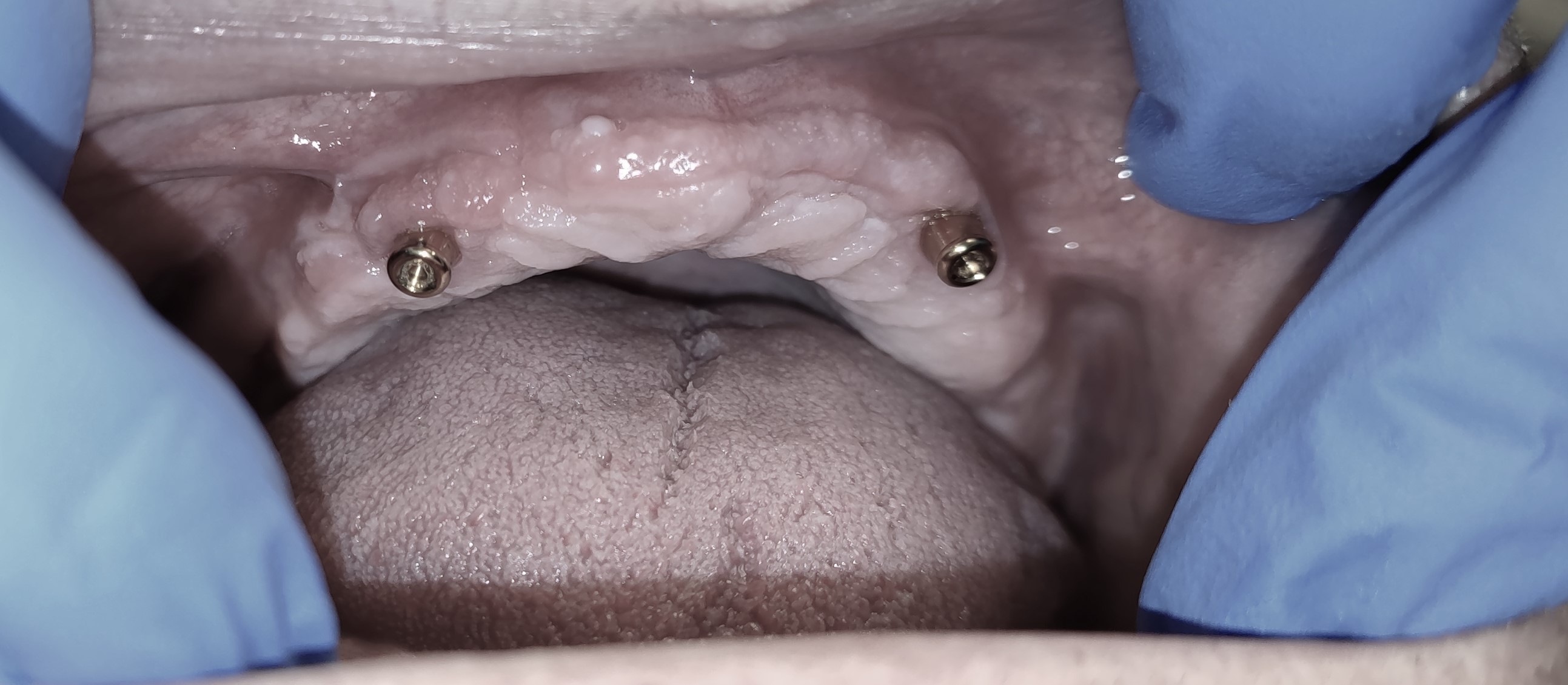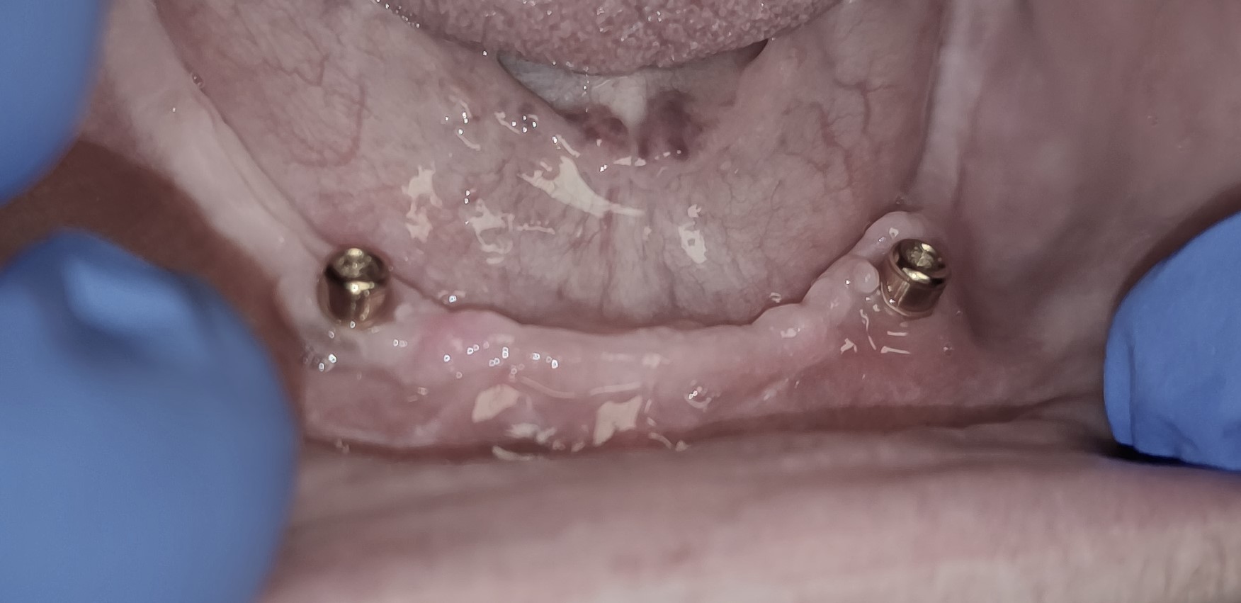 Zur Prothesenfixierung werden mindestens 2 Implantate implantiert, auf denen der fertige Zahnersatz befestigt wird. Dies